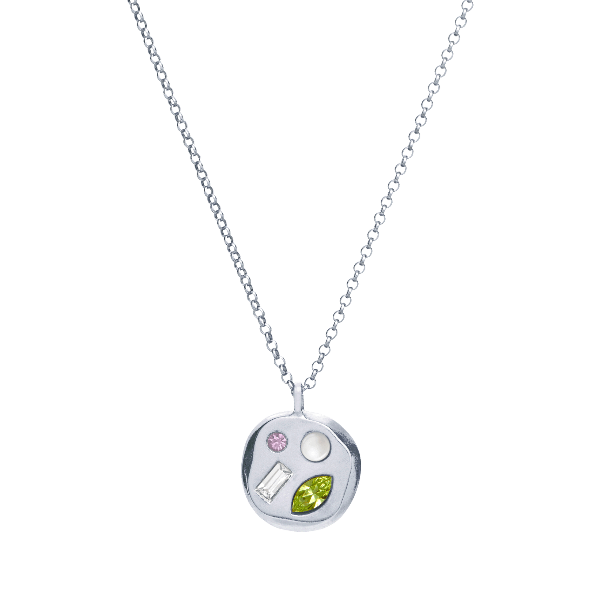 A custom pendant personalized for souls born on August 12. This elegant necklace has four gemstones and crystals that were selected by our astrologers to create the perfect energetic combination for August 12 birth charts.