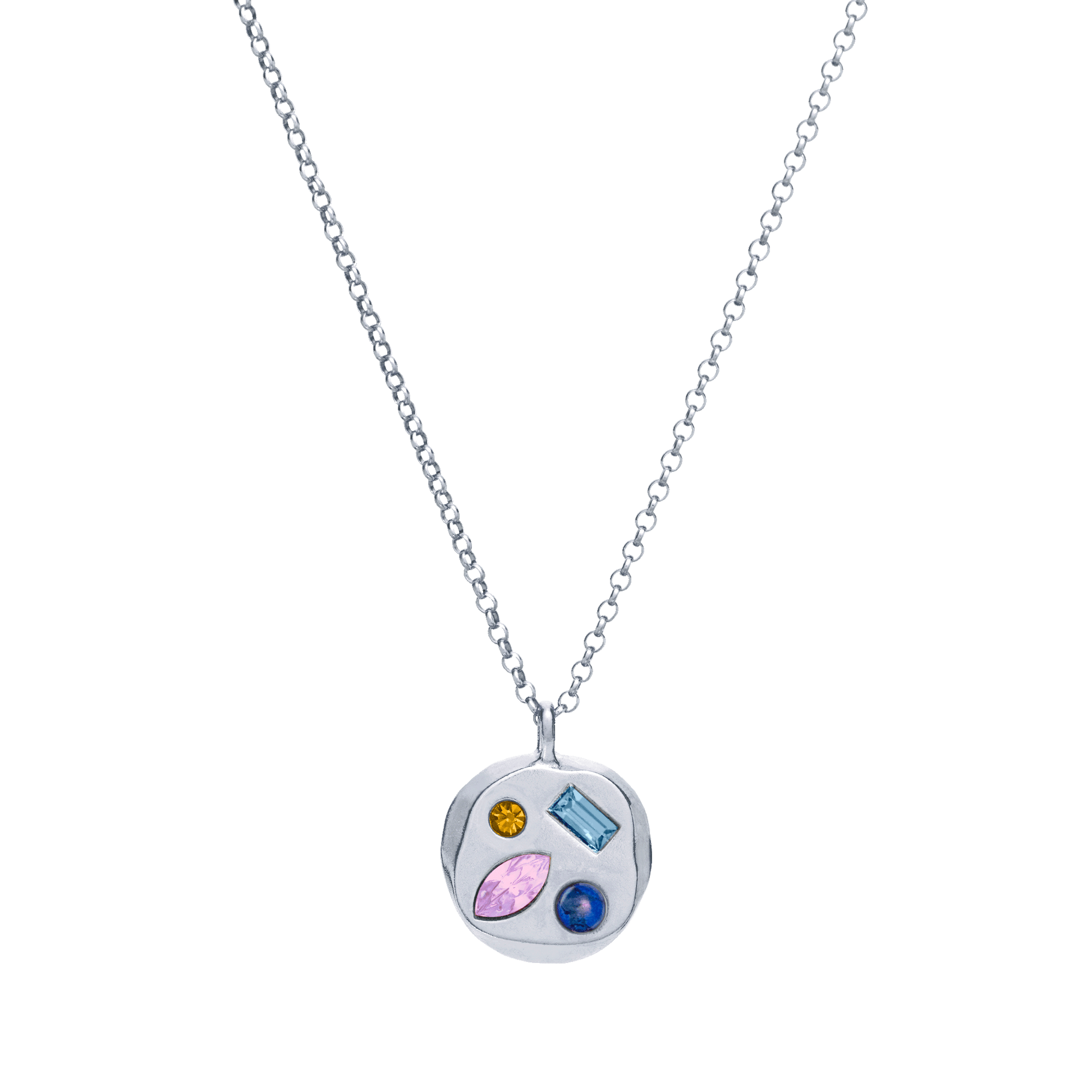 A custom pendant personalized for souls born on February 25. This elegant necklace has four gemstones and crystals that were selected by our astrologers to create the perfect energetic combination for February 25 birth charts.