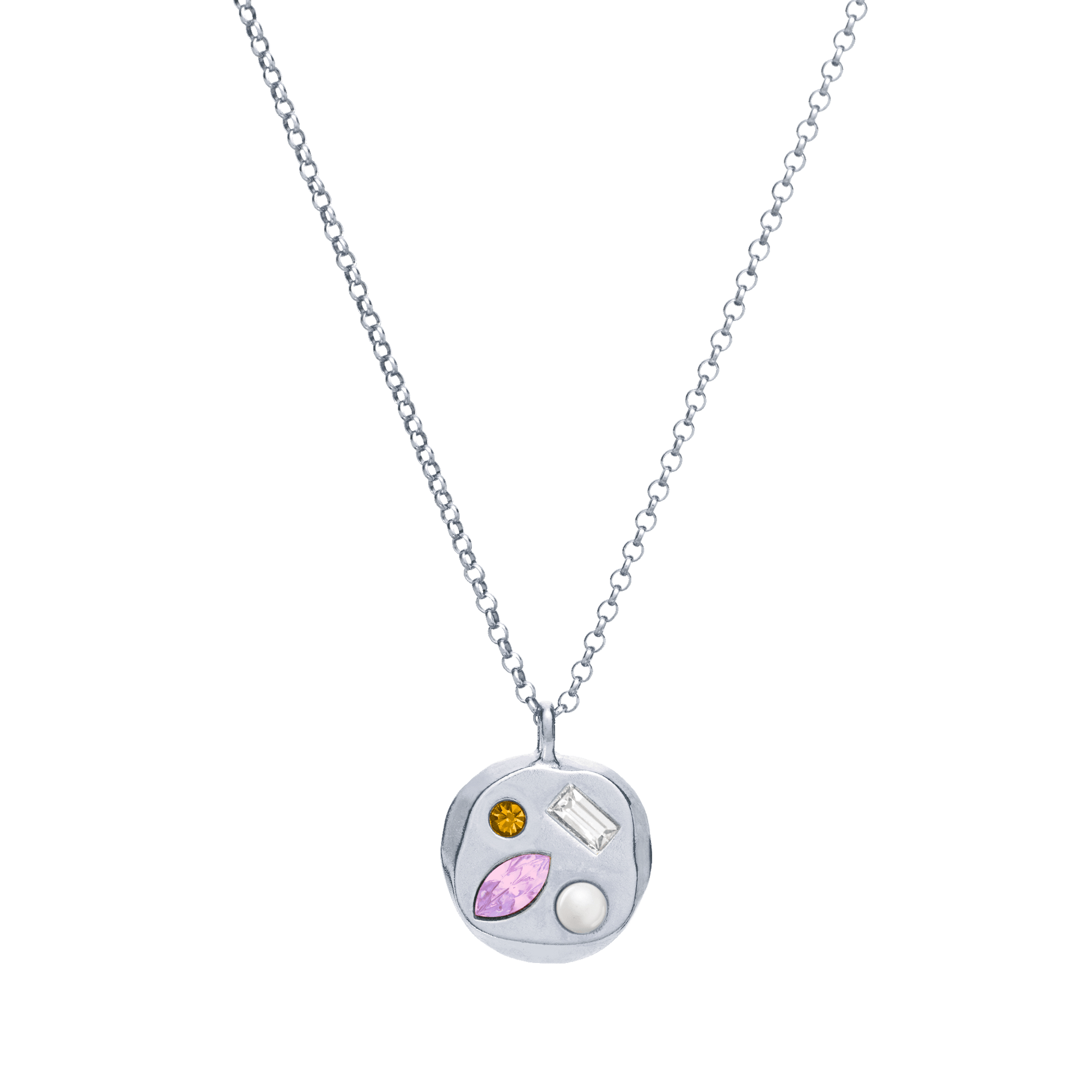 A custom pendant personalized for souls born on June 25. This elegant necklace has four gemstones and crystals that were selected by our astrologers to create the perfect energetic combination for June 25 birth charts.