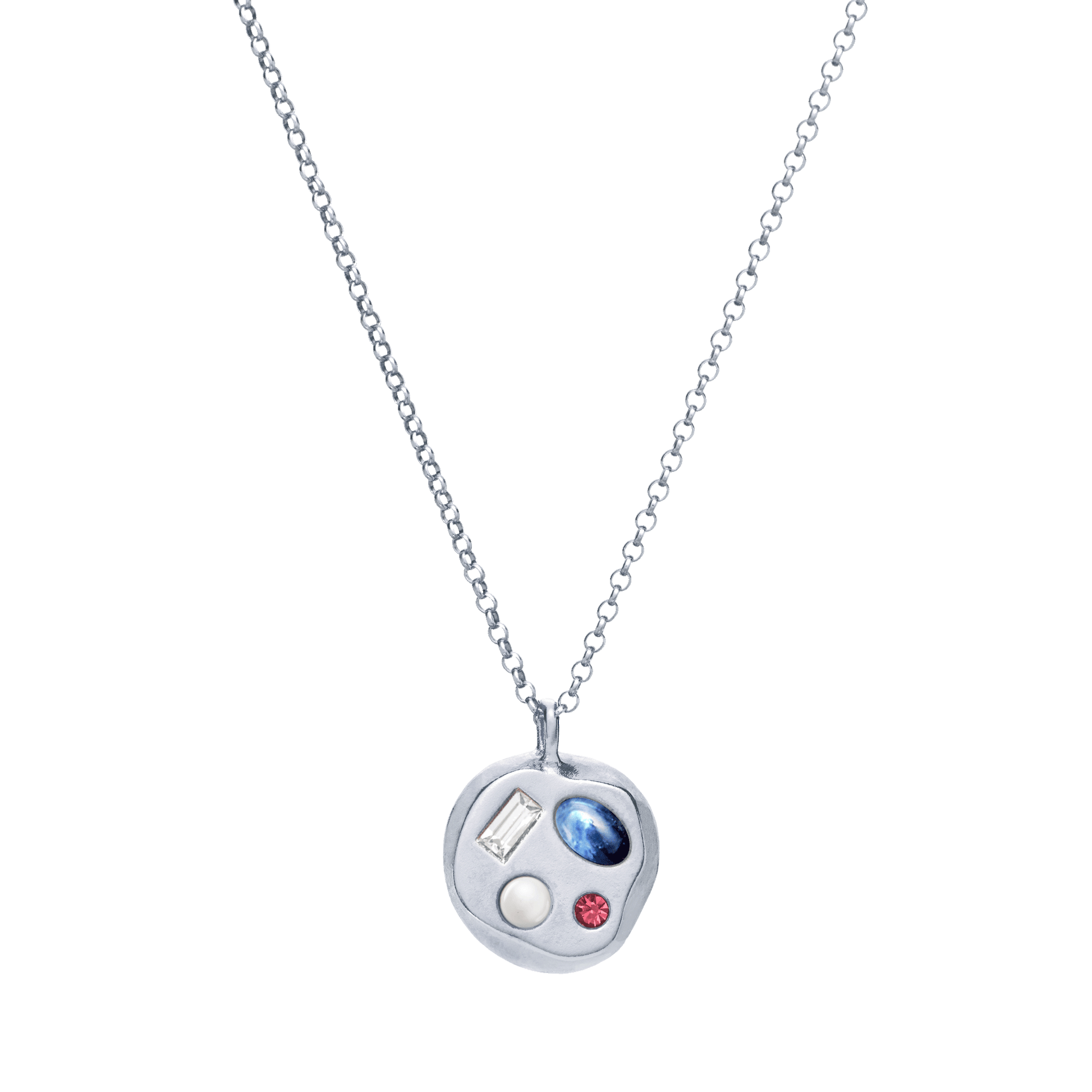 A custom pendant personalized for souls born on April 24. This elegant necklace has four gemstones and crystals that were selected by our astrologers to create the perfect energetic combination for April 24 birth charts.