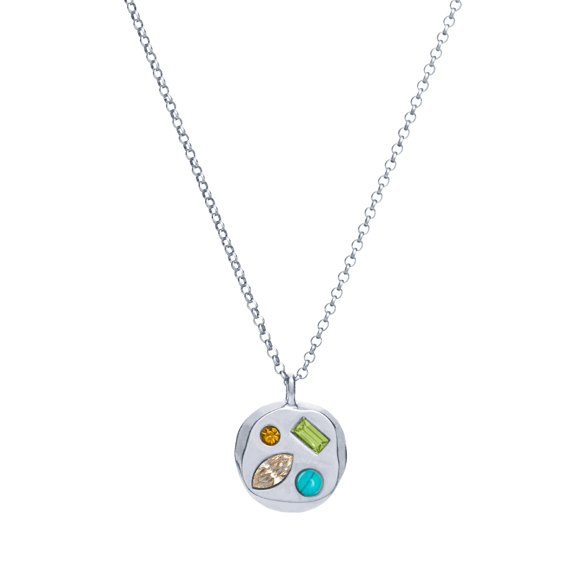 A custom pendant personalized for souls born on April 10. This elegant necklace has four gemstones and crystals that were selected by our astrologers to create the perfect energetic combination for April 10 birth charts.