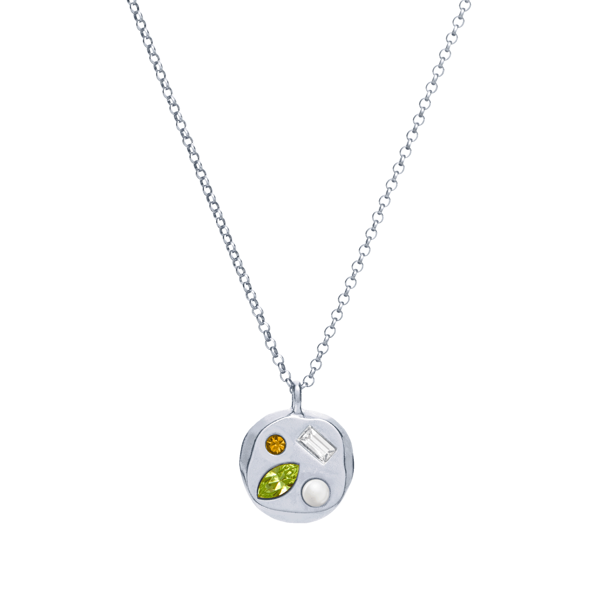 A custom pendant personalized for souls born on August 10. This elegant necklace has four gemstones and crystals that were selected by our astrologers to create the perfect energetic combination for August 10 birth charts.