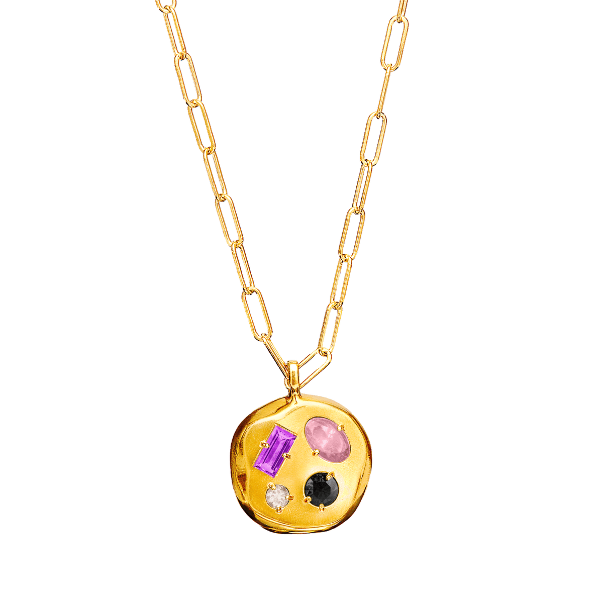 A custom pendant personalized for souls born on February 11. This elegant necklace has four gemstones and crystals that were selected by our astrologers to create the perfect energetic combination for February 11 birth charts.