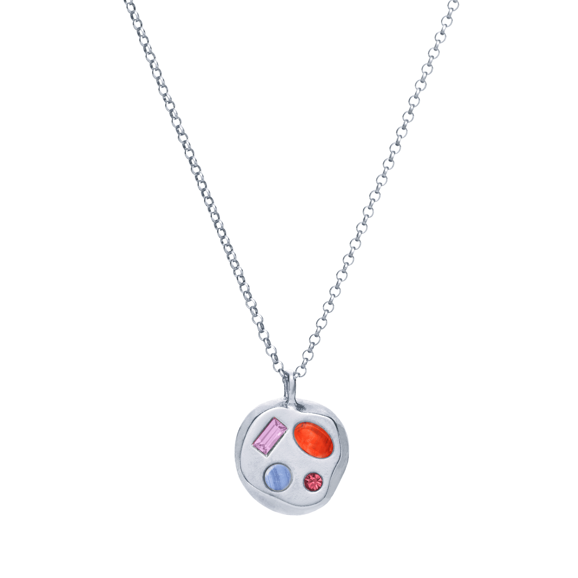 A custom pendant personalized for souls born on February 14. This elegant necklace has four gemstones and crystals that were selected by our astrologers to create the perfect energetic combination for February 14 birth charts.