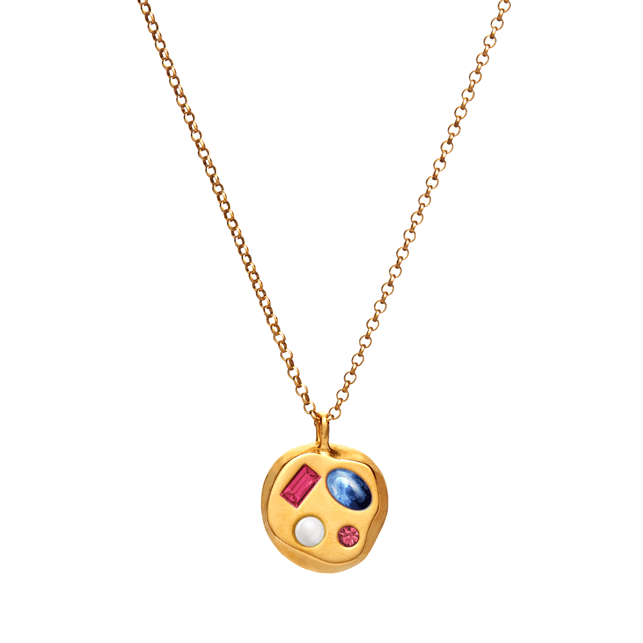 A custom pendant personalized for souls born on July 19. This elegant necklace has four gemstones and crystals that were selected by our astrologers to create the perfect energetic combination for July 19 birth charts.