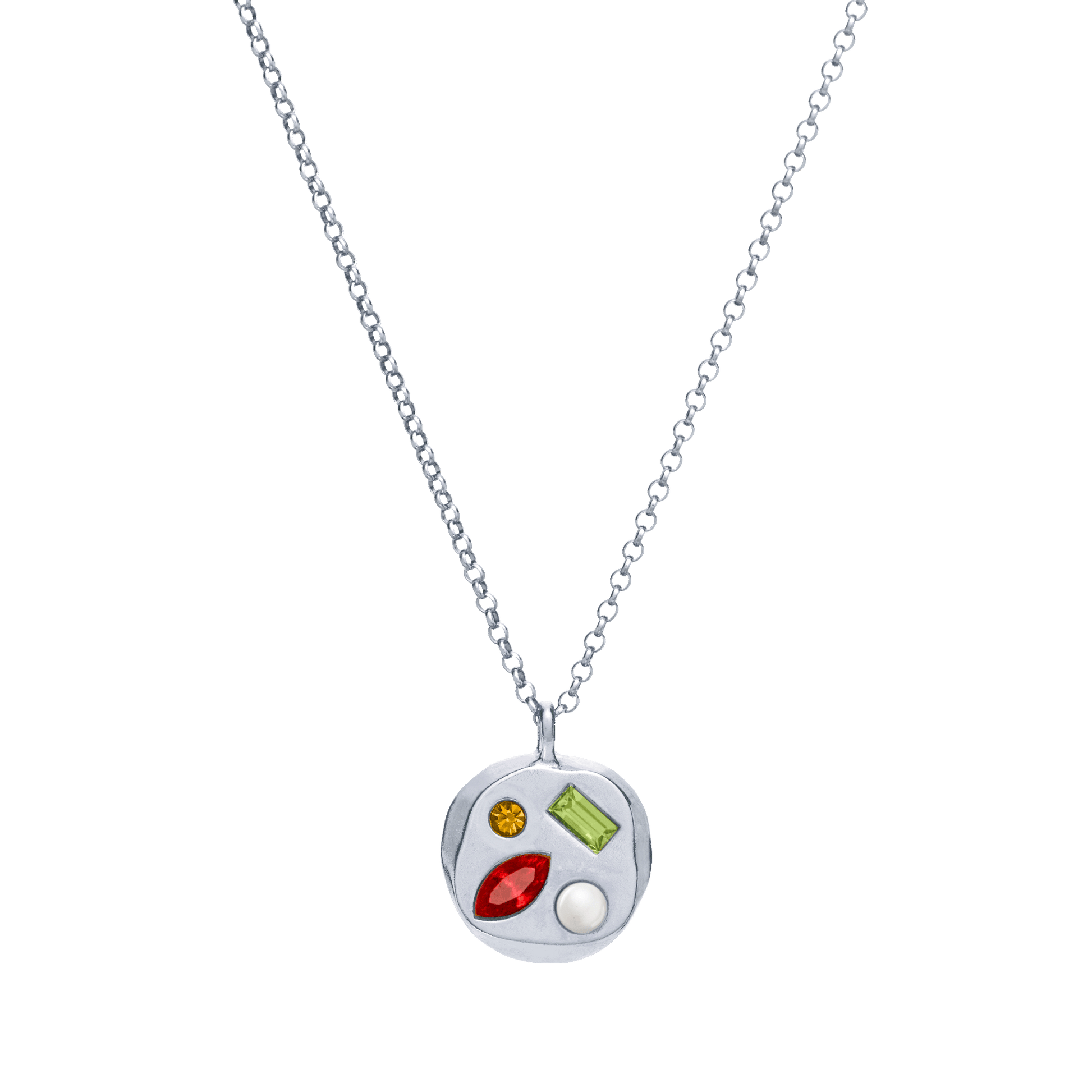 A custom pendant personalized for souls born on July 20. This elegant necklace has four gemstones and crystals that were selected by our astrologers to create the perfect energetic combination for July 20 birth charts.