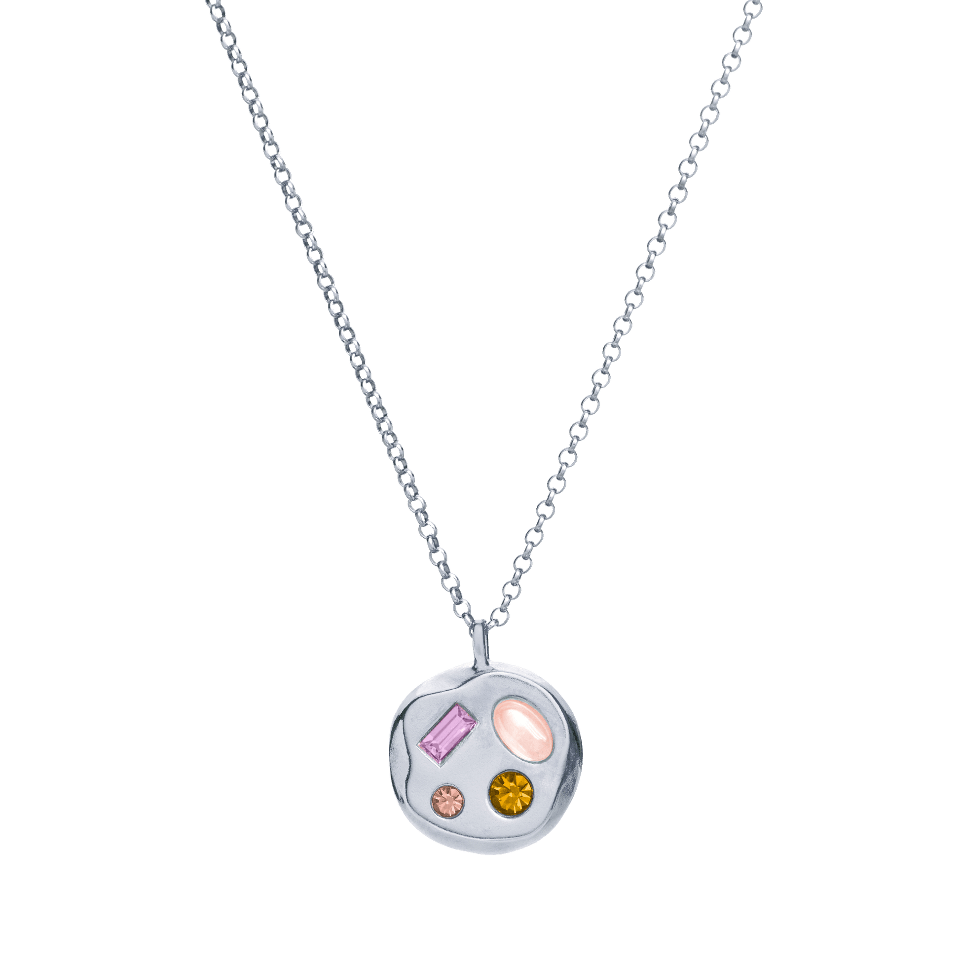A custom pendant personalized for souls born on June 16. This elegant necklace has four gemstones and crystals that were selected by our astrologers to create the perfect energetic combination for June 16 birth charts.