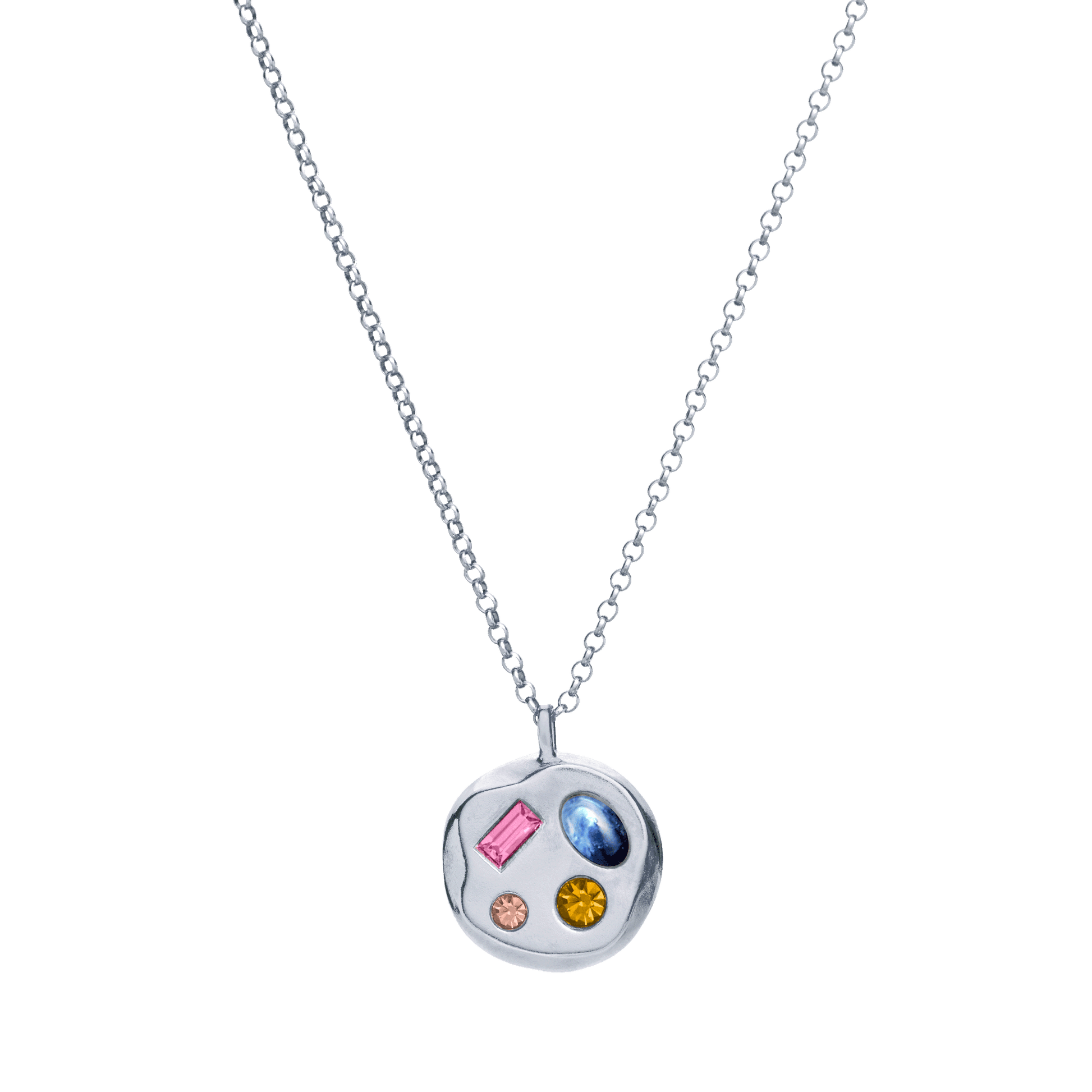 A custom pendant personalized for souls born on October 16. This elegant necklace has four gemstones and crystals that were selected by our astrologers to create the perfect energetic combination for October 16 birth charts.