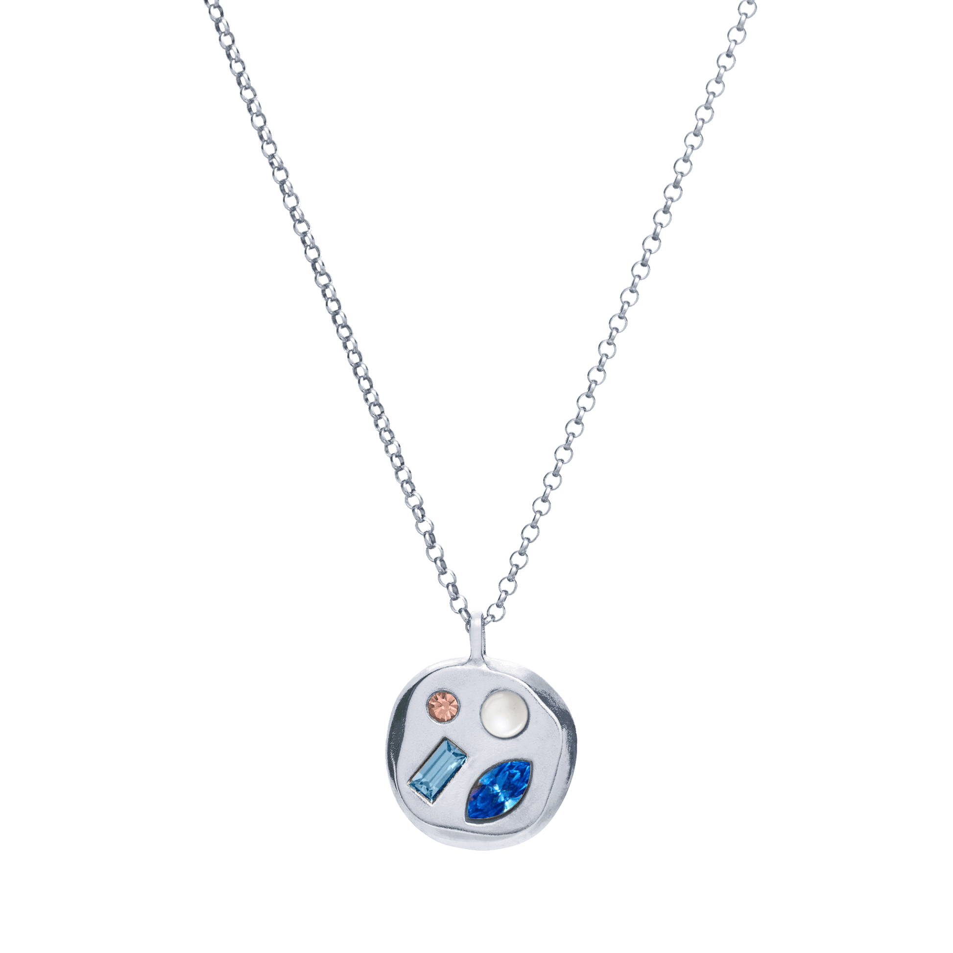 A custom pendant personalized for souls born on September 17. This elegant necklace has four gemstones and crystals that were selected by our astrologers to create the perfect energetic combination for September 17 birth charts.